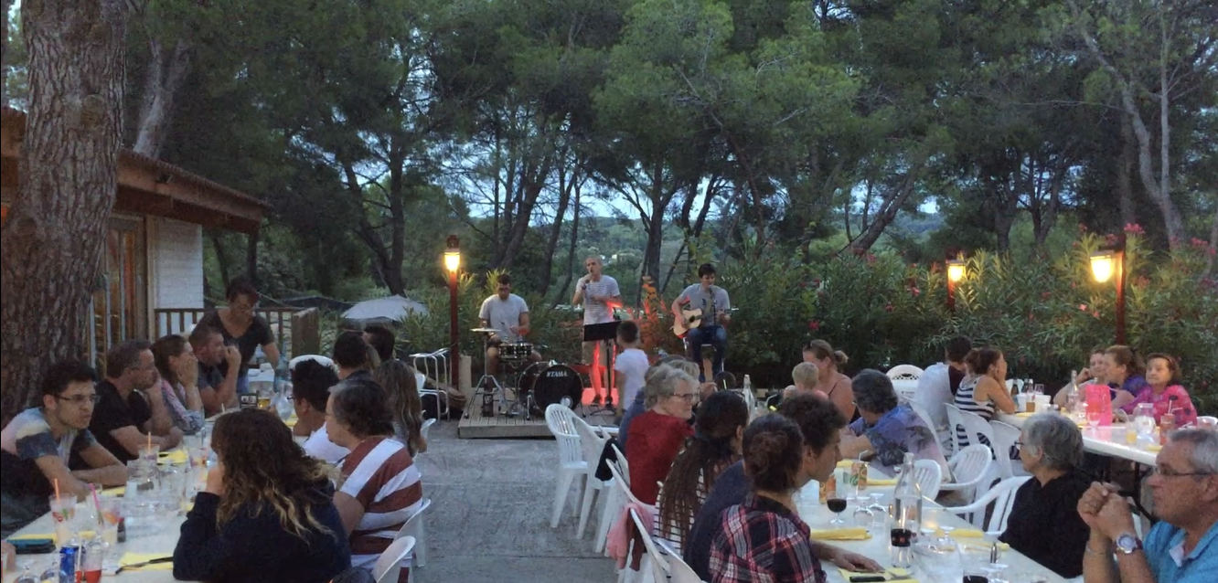 Le Camping Lou Paradou organise tous les mardis en juillet et août à partir de 19h30 un repas (plus d’informations sur le menu à l’accueil du camping) animé par un chanteur puis une soirée dansante animée par un DJ jusqu’à minuit.